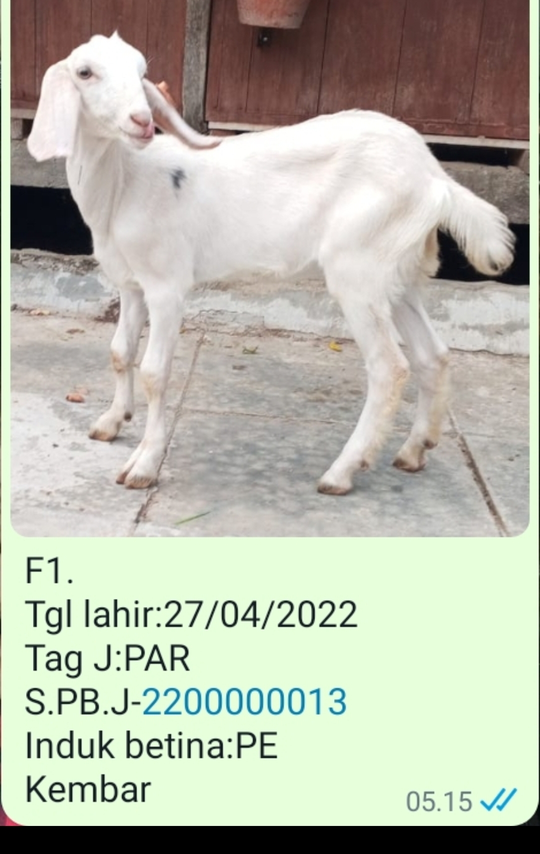 | Induk Jantan | S.PB.J-2200000013 |